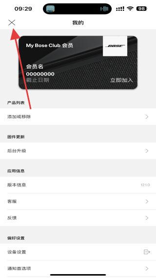 1、启动Bose音乐App,进入时点击右上方人像的图标。