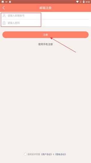 3、输入邮箱账号、密码后,点击注册即可成功。