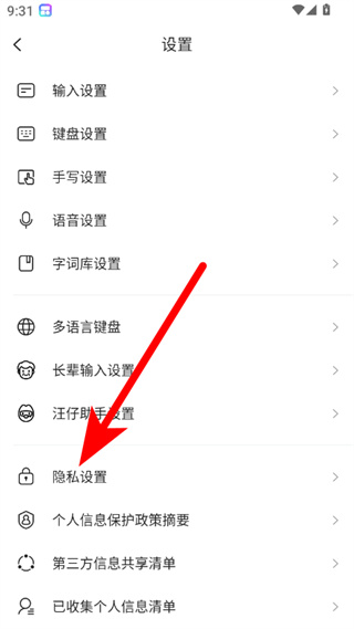 2、在设置页面,点击隐私设置选项,进入隐私设置界面。