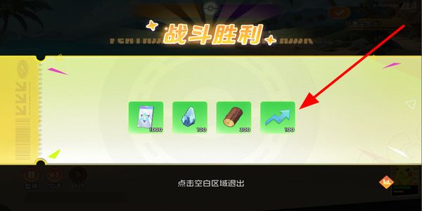 4、战斗胜利后获取各类资源奖励,点击空白区域退出结算界面,继续后续游戏进程。