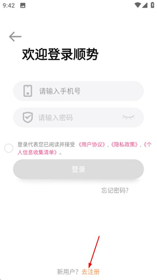 2、在登录页面点击去注册选项,进入注册页面。