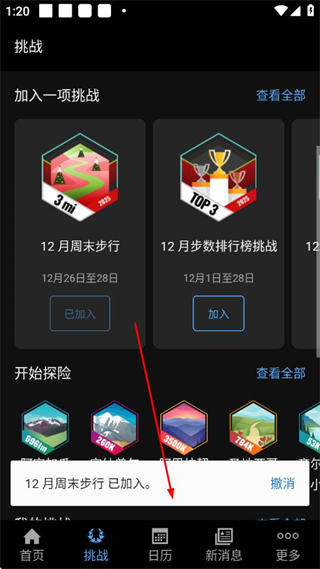 3、页面提示已加入,即成功加入该挑战模式。