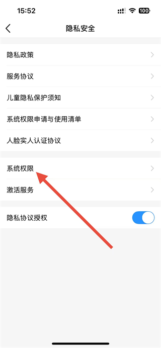 4、在系统权限列表界面,如需修改权限,点击跳转至手机系统设置中操作。
