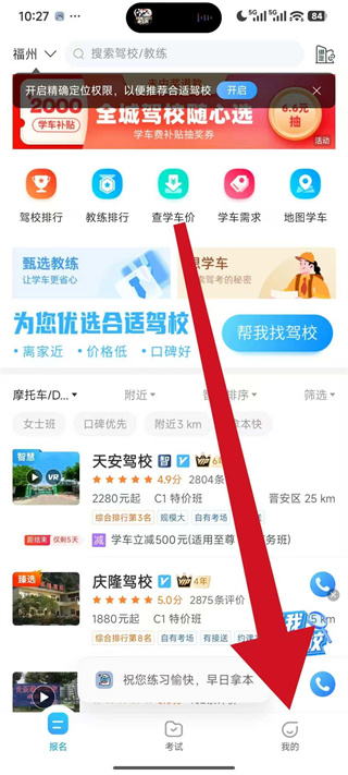 1、打开驾考宝典,进入首页后点击底部导航栏的我的,进入个人中心页面。
