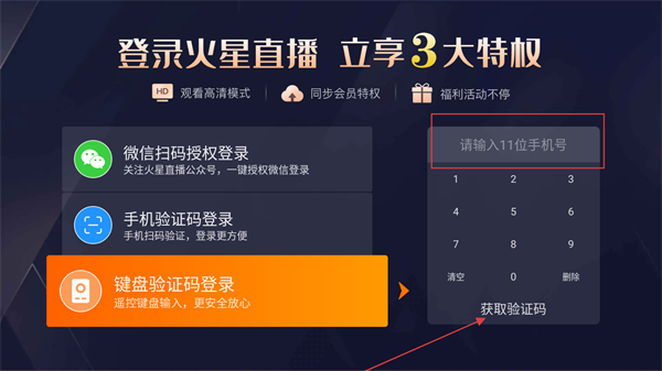 3、进入登录方式的页面内,点击键盘验证码登录的按钮。
