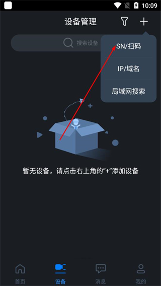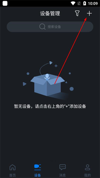 2、进入设备管理页面后,点击右上角的+。