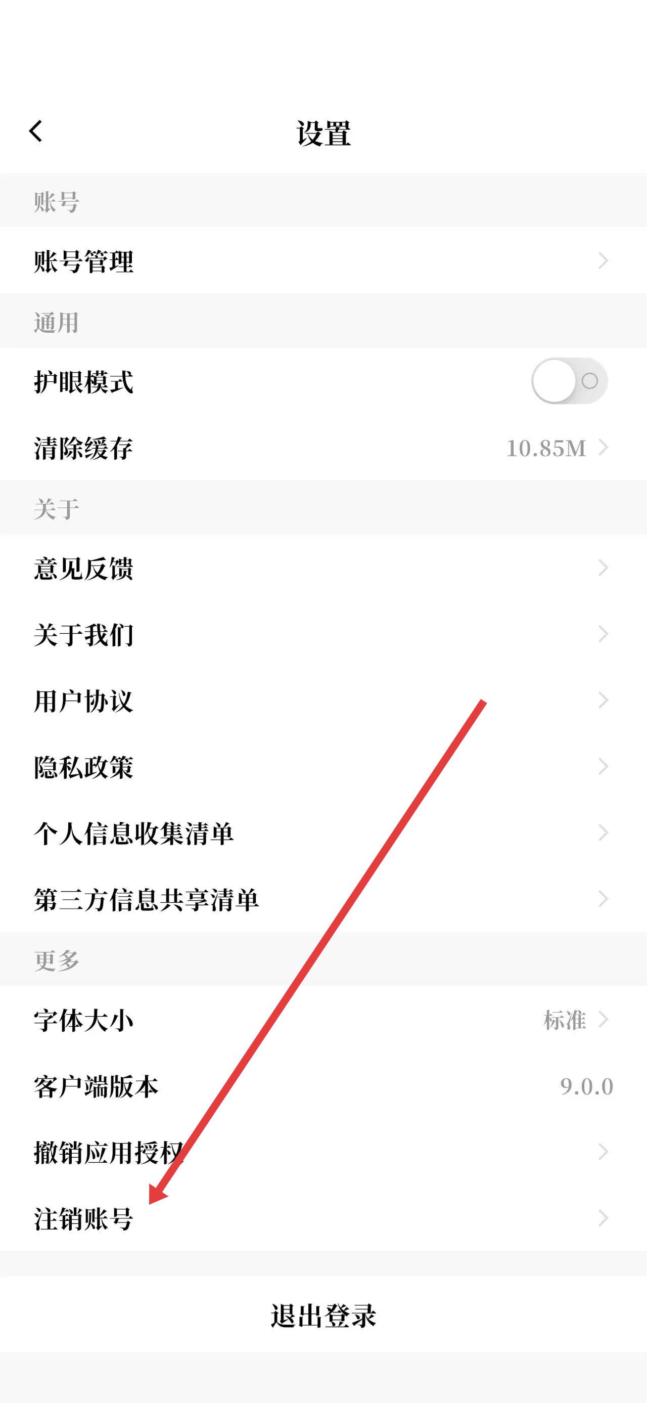 3、在设置界面中,找到并点击注销账号选项。
