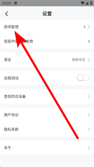 3、在设置页面,点击房间管理选项,进入房间管理页面。