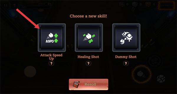 3、进入开局技能选择界面,可以点击任意目标技能选项后开始游玩。