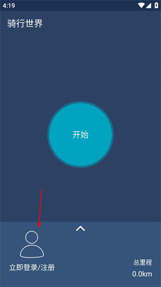 2、进入骑行世界主页面,找到页面底部的立即登录/注册选项,点击该选项进入登录相关页面。