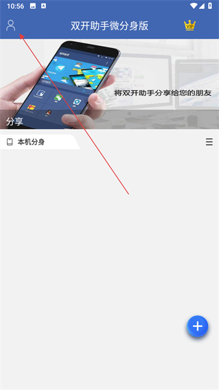 1、打开双开助手,点击页面左上角的个人中心图标。