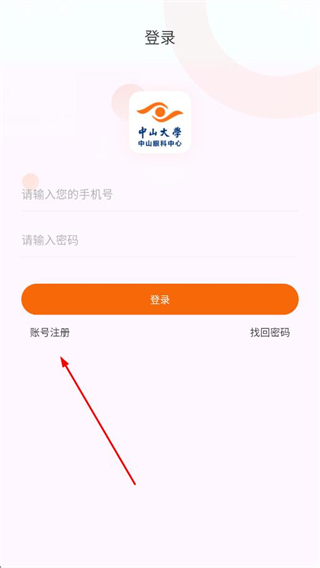 1、打开中山眼科中心APP,在登录页面点击账号注册。
