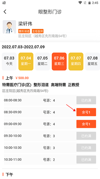 5、选择该医生的可预约时段。
