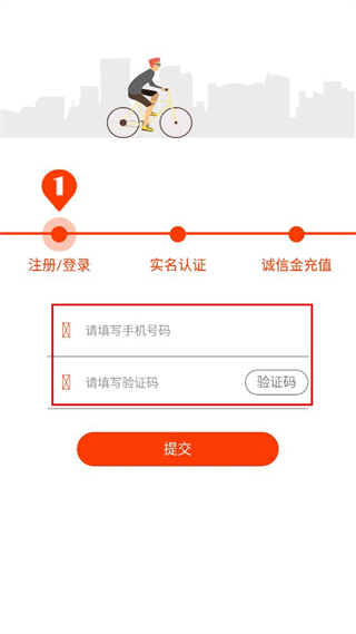 1、进入共享出行软件注册登录页面,在对应输入框填写个人的手机号码信息。