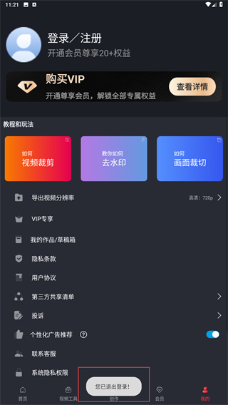 视频剪辑工厂怎么退出登录