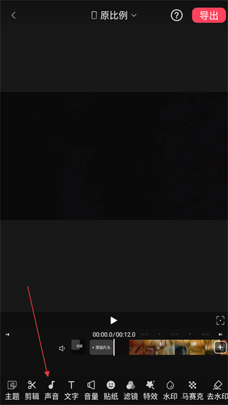 3、进入视频编辑的页面内,点击下方声音的功能按钮。