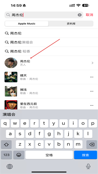 3、在输入框内输入歌手名称,点击下方对应的目标人物即可。
