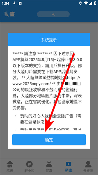 1、打开拷贝漫画,在跳出来的弹窗点击确认,进入首页。