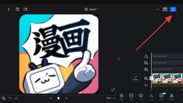 4、将素材导入剪辑轨道,根据需求进行剪辑,剪辑后点击右上角导出↑的图标即可完成。
