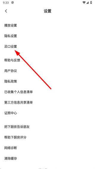 3、在设置页面点击忌口设置选项,进入忌口设置页面。