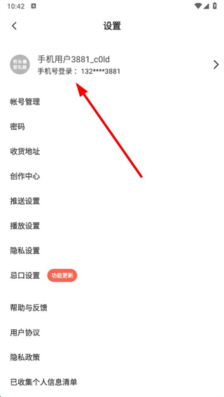 3、进入设置页面后,点击用户信息区域进入编辑个人资料页面。