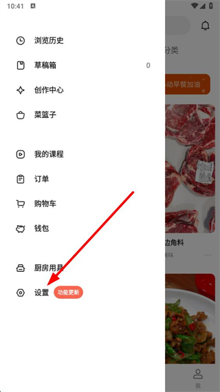1、在下厨房app界面左上角,找到菜单按钮并点击,展开包含各类功能入口的侧边栏列表。