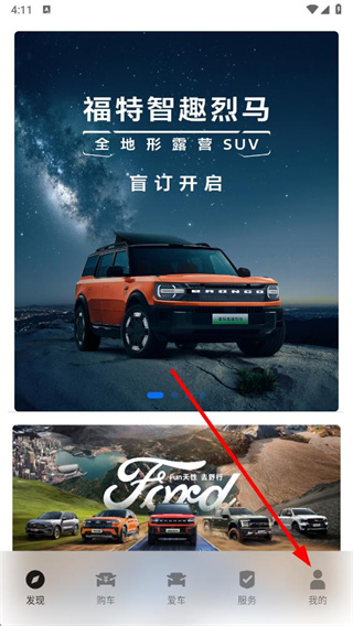 1、在福特派互联应用,点击界面底部我的选项,进入我的页面。