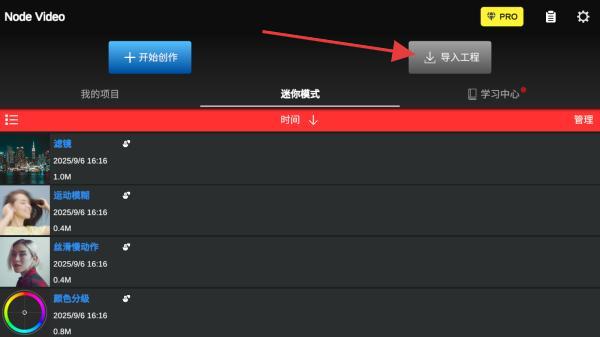 1、打开APP进入到首页,点击界面中的导入工程的按钮。