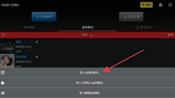 2、在弹出的选项中,选择导入QR码图片并点击。