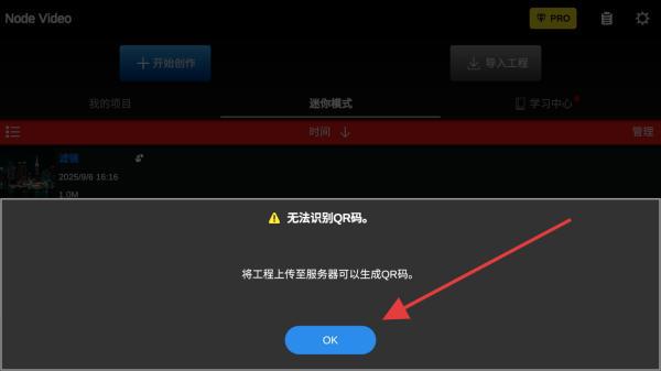 4、根据弹出的提示:将工程上传至服务器可以生成QR码,点击OK的按钮可开始导入。