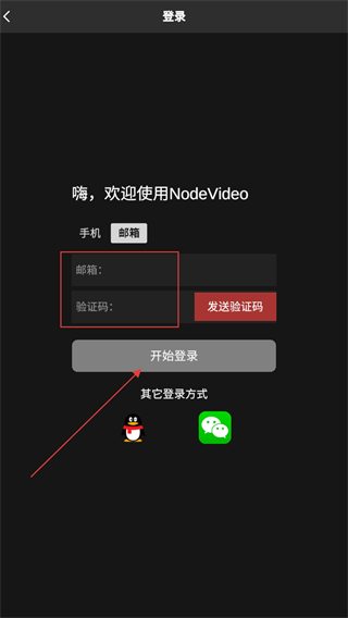 3、输入邮箱号、验证码后,再点击开始登录的按钮即可。