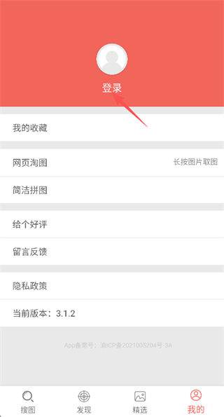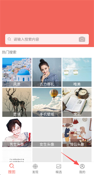 1、在搜图页面点击底部我的选项,进入个人中心页面。