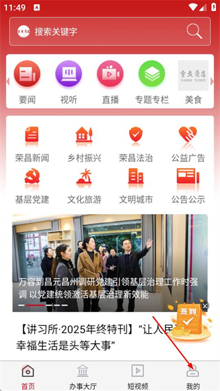 1、在重庆荣昌首页点击底部我的选项,进入个人中心页面。