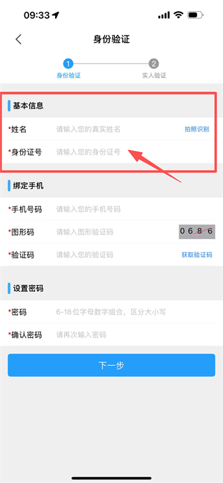 2、在身份验证页,填写您的真实姓名和您的身份证号等基本信息。