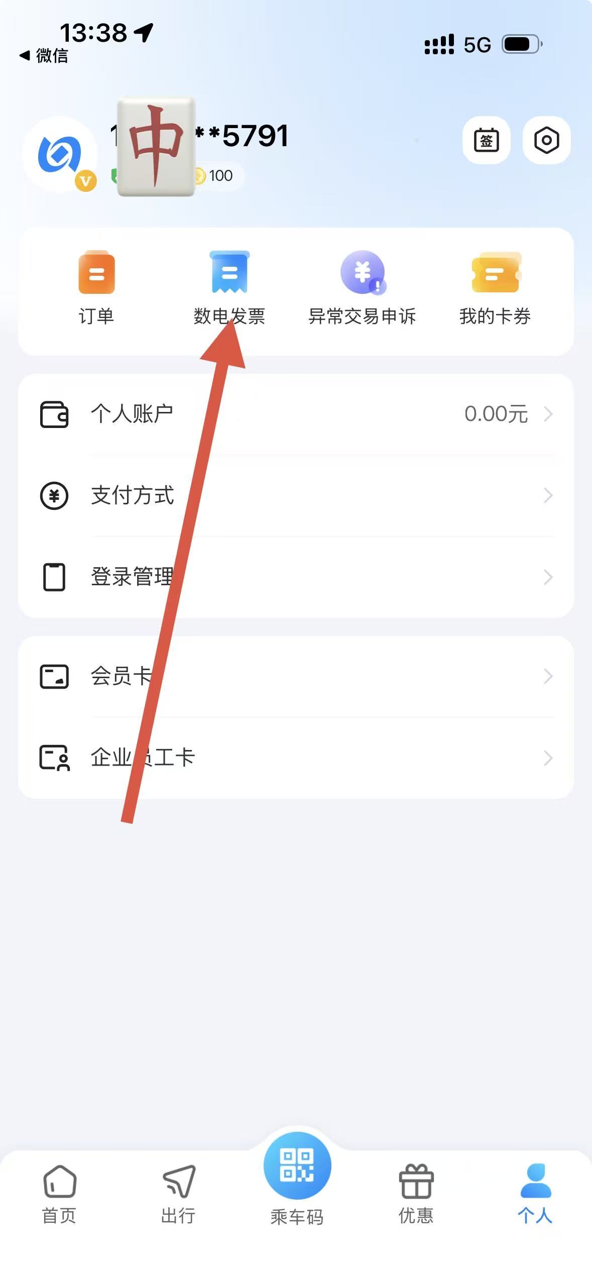 2、在个人界面中,点击数电发票选项。