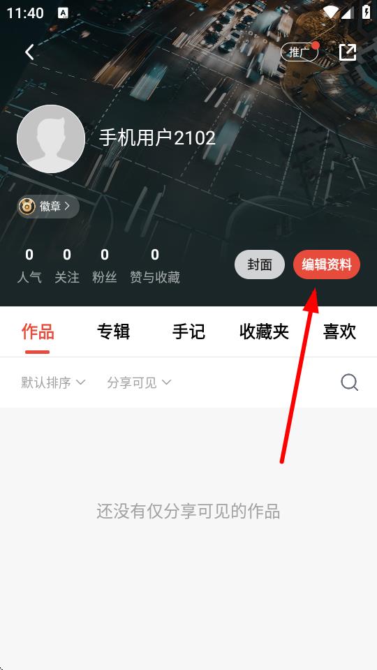 3、在个人主页里,找到并点击编辑资料按钮,进入资料编辑界面。