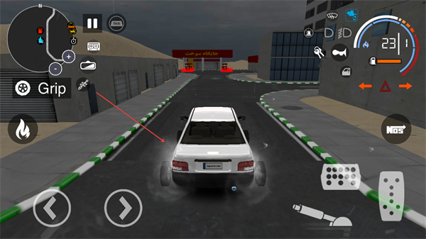 1、操控车辆沿道路行驶,借助方向键调整转向,靠近目标区域加油站方向。