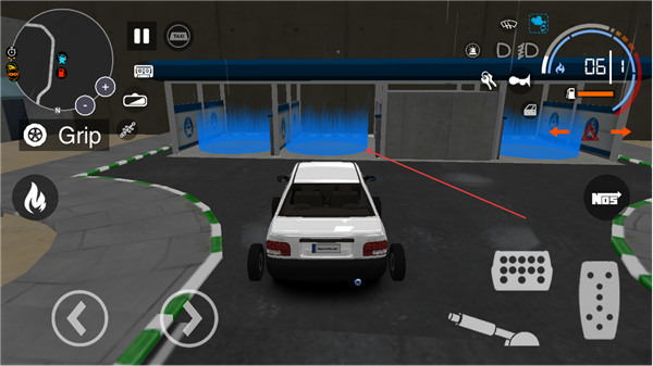 2、跟随道路指引向车库区域前进,控制油门和转向,适配弯道地形。