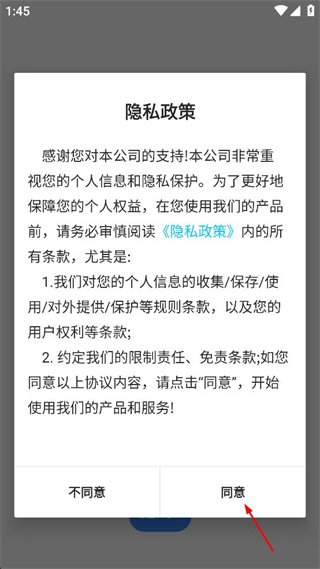 1、阅读隐私政策内的条款,包括个人信息相关规则及责任约定,确认后点击同意按钮,完成政策确认。