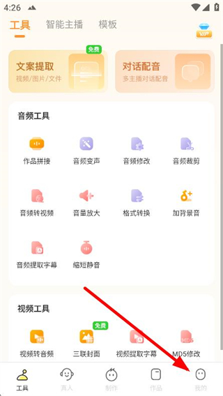 1、打开配音鸭app,点击底部导航栏的我的选项。