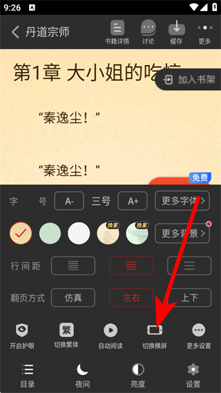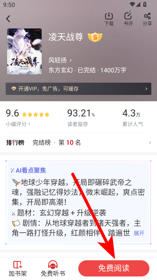 2、在小说详情界面,点击免费阅读,进入小说阅读页面。
