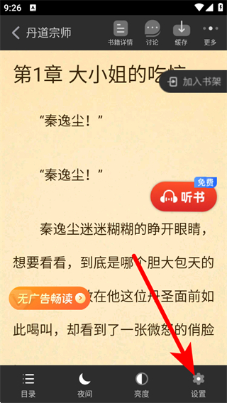 3、在书籍阅读界面,点击右下角设置选项,展开设置菜单。