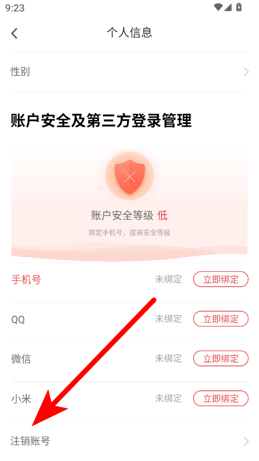4、在个人信息界面,点击注销账号选项,按提示完成账号注销操作。