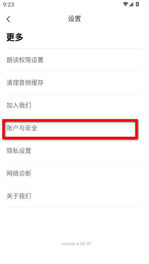 3、在设置页面,点击账户与安全选项,进入个人信息界面。
