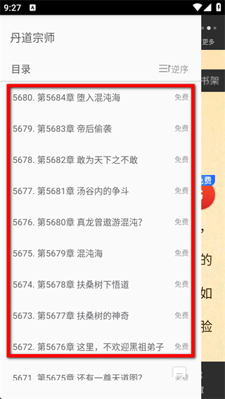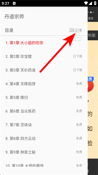 4、切换后,目录即变为倒序排列,可按倒序查看章节。