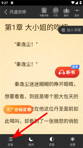 2、在书籍阅读界面,点击左下角目录选项,展开目录列表。
