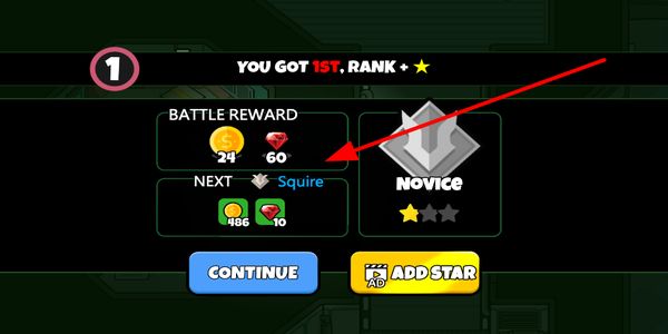 4、坚持到对局剩余少量存活者,获得胜利排名后领取金币、钻石等奖励,提升自身段位等级。
