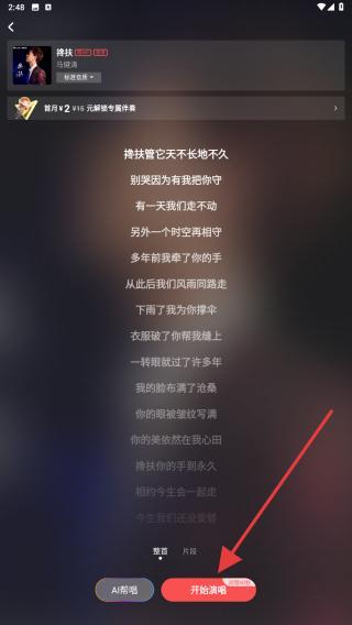 3、进入歌曲演唱页后,用户需点击开始演唱。