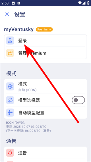 1、进入Ventusky应用界面后,找到右上角的设置并点击,进入设置页面。