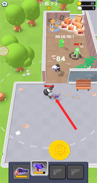 4、切换武器后,操控角色靠近标有抢这些的区域,攻击该区域内的丧尸,完成目标的同时获取奖励。